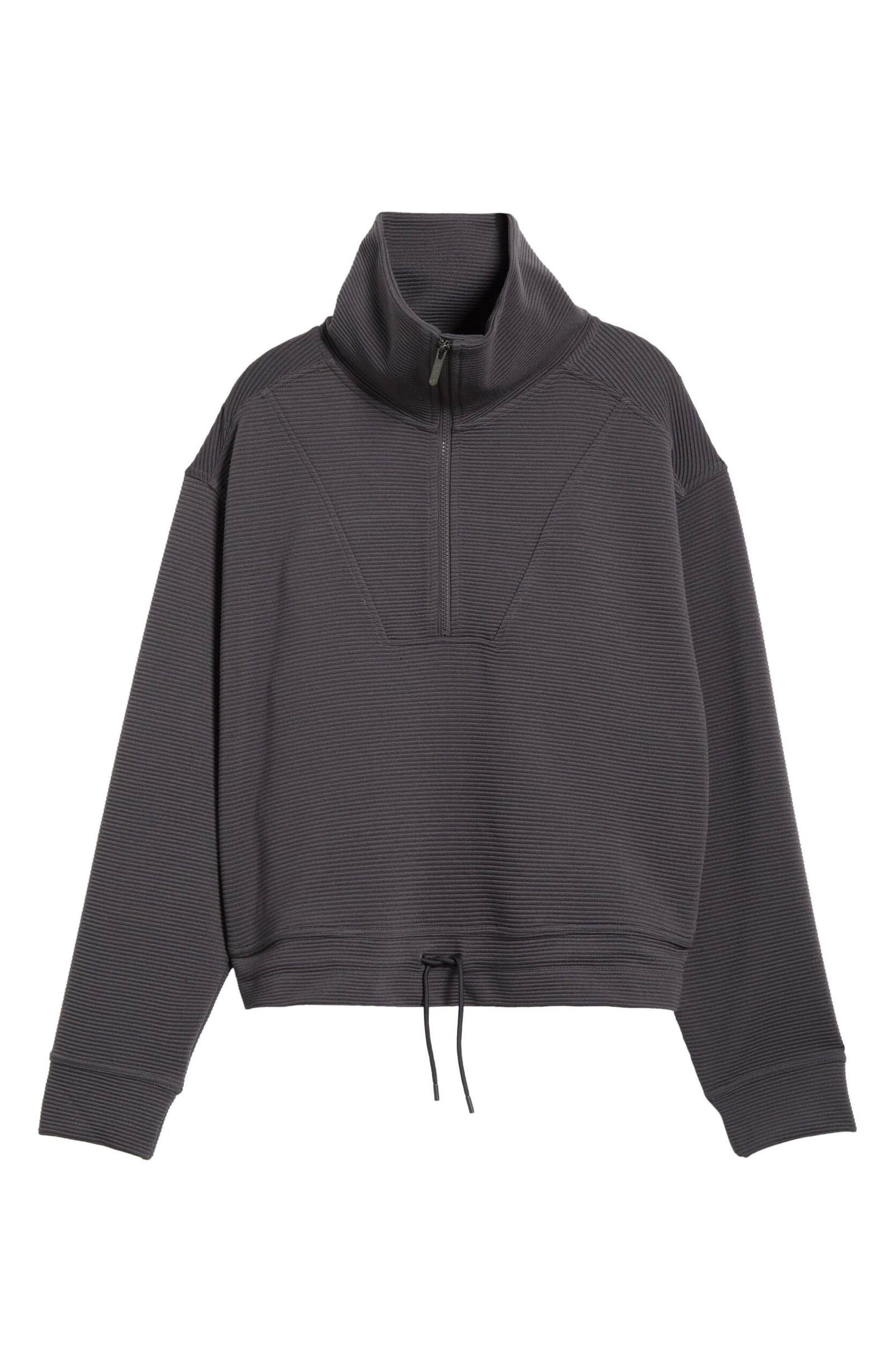 Horizontal ottoman ribbing lends rich texture to a softly stretchy tunic topped with a half-zip closure and finished with an adjustable drawstring hem.